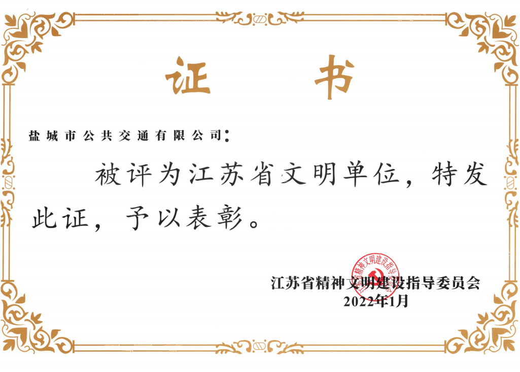 • 2022年4月公司被授予2021年度鹽城市文明創建工作先進集體榮譽稱號